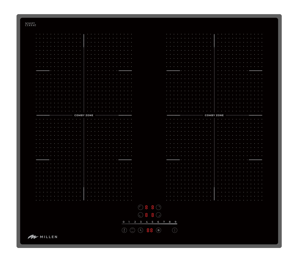 Приготовление пищи на индукционной варочной панели MILLEN MIH 602 BL – это безопасный, эффективный и экономичный способ приготовления. В индукционных панелях происходит нагрев непосредственно самого дна посуды благодаря электромагнитному полю, которое образуется между посудой и рабочими элементами варочной поверхности. Стеклокерамическая основа может нагреваться только за счет соприкосновения с нагреваемой посудой.