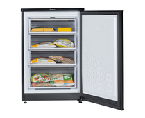 Чёрный компактный морозильный шкаф Бирюса B514 объёмом 110 литров, обеспечивает хранение размещенных внутри продуктов. Модель отлично подойет для небольших помещений. Внутренняя камера разделена на 4 отделения.