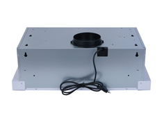 В последнее время все большим спросом начинают пользоваться встраиваемые вытяжки. Они довольно компактны и монтируются в специальный навесной шкаф над плитой. При этом "на виду" остаётся лишь узкая панель, которая выдвигается вперёд при работе вытяжки. Это нужно для более полного охвата поверхности плиты, чтобы грязный воздух не поднимался к потолку.