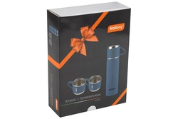 Термос нерж. 0,5л. Mallony Festa узкое горло, кнопка, 3 чашки-термо 106055