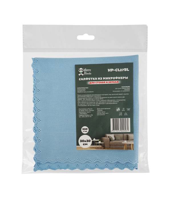 Салфетка д/стёкл и зеркал 1шт., микрофибра, 30*30см. Happy Panda HP-CL27BL